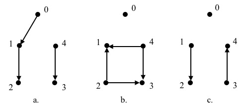 {0:[], 1:[2], 2:[], 3:[4], 4:[]} # c