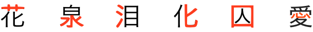 Likewise, there is no rule for where in the kanji we will find its radical, although commonly it will be in one of its sides: on top, like in 花 (flower); at the bottom, like in 泉 (fountain); on the left, like in 泪 (tear); or on the right, like in 化 (change). In these cases, semantic radicals tend to appear on the left and top of the kanji, while phonetic ones tend to appear on the right and bottom. Other possibilities are for the radical to surround the kanji, either partially or totally, like in 囚 (prisoner), or to be in the middle of it, like in 愛 (love). Here are these kanjis, with their radicals in red: