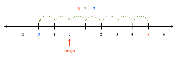 Starting at position 5 we step back 7 units to end up in position -2