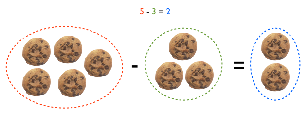 We have 5 cookies and give away 3, so we are left with 2 cookies